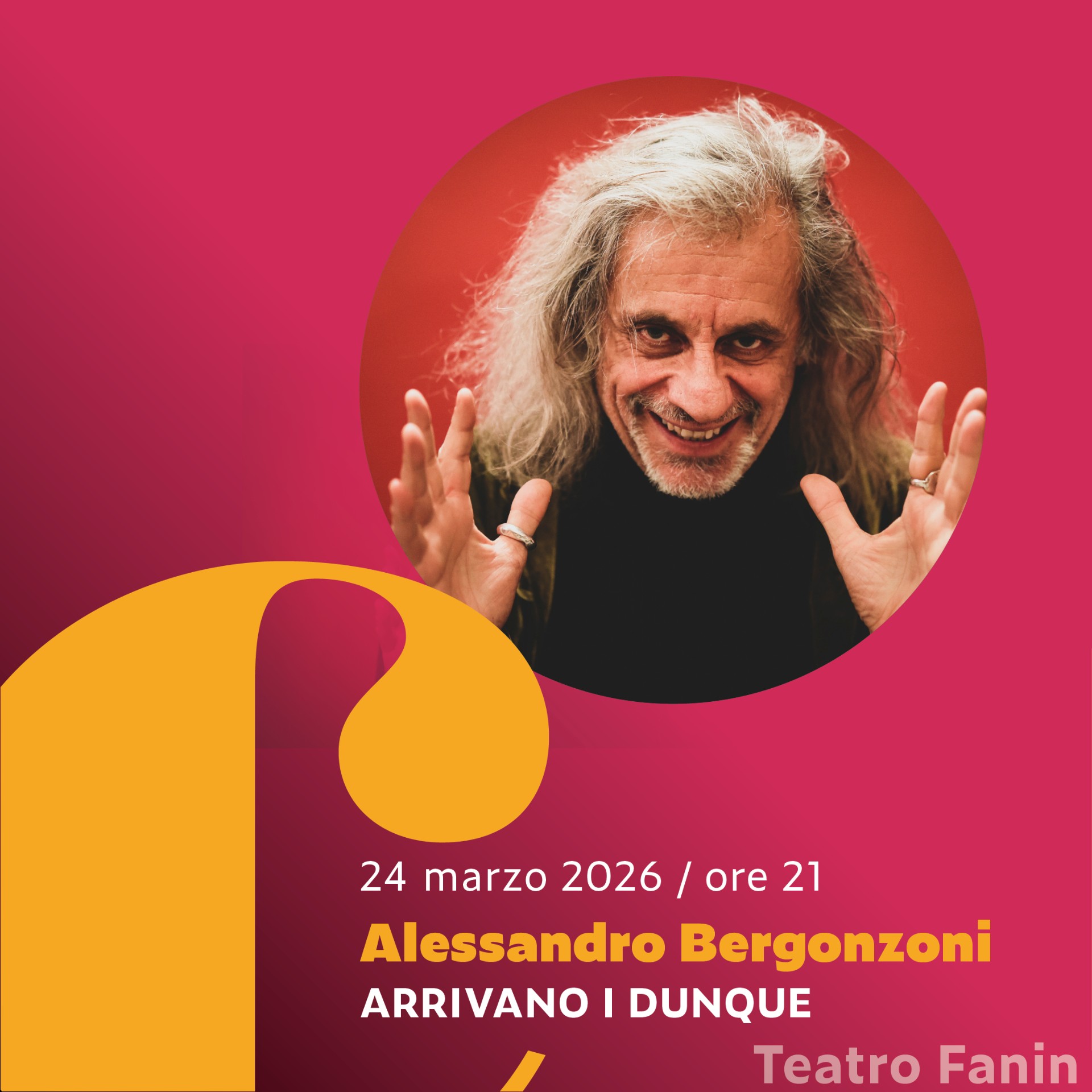 Nell'ambito della stagione teatrale 2025/2026 del Comune di Persiceto, martedì 24 marzo, alle ore 21, al Teatro Fanin si terrà lo spettacolo "Arrivano i Dunque" di e con Alessandro Bergonzoni che intratterrà il pubblico con la sua caratteristica e surreale arte affabulatoria, parlando di avannotti, sole blu e della storia della giovane Saracinesca.
